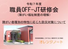職員OFF-JT研修9月は防災出前講座「障がい者種別の特性に応じた防災対策」を実施しました。 研修では、障がいの種別ごとに求められる配慮や、避難時の対応ポイントなどについて具体的に学びました。 災害時における障がい特性へ […]