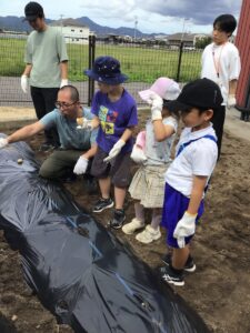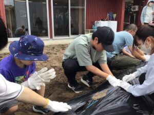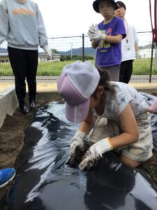 植え方の説明をしっかり聞いてから、みんなで一緒に植えています(⌒∇⌒)