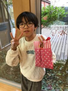 お菓子のいっぱい入った袋をみんなに渡してくれました(o^―^o)