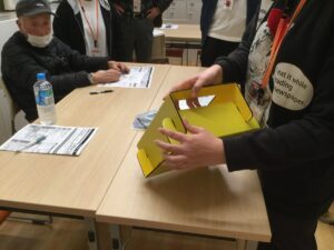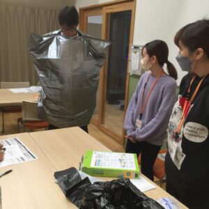 という意見を踏まえ、車内でも使用できる携帯トイレの使い方を確認しました。
