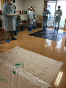 今回の職員OFF-JT研修では、感染症予防対策をテーマに、嘔吐物処理の方法について学びました。
