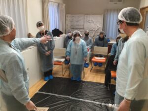 研修では、個人防護具(PPE)の着用から処理後の片付けまで、一連の流れを実践形式で訓練しました。実際に体を動かしながら行うことで、手順の理解がより深まり、いざという時にも落ち着いて対応できる自信につながりました。