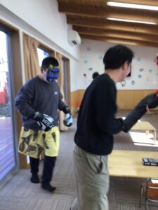 今回は毎年行っている節分と少し変えて、豆の代わりに新聞紙を丸めた物を室内に隠し