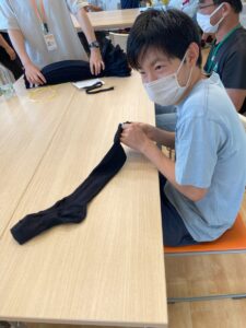 靴下が伸びないように注意して行ってます( ^)o(^ )