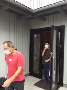 「火事だーーーー」の声でみんなで一斉に避難します。